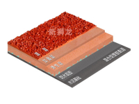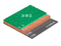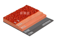 ① 面 層:全天候使用、耐磨、抗紫外線、抗老化。② 彈 性 層:EPDM顆粒+單組份膠水,環保凈味、不返油、施工便捷。③ 底涂:具有防水性,滲透強化底層表面,提高粘貼性。④ 基 礎:水泥基礎
